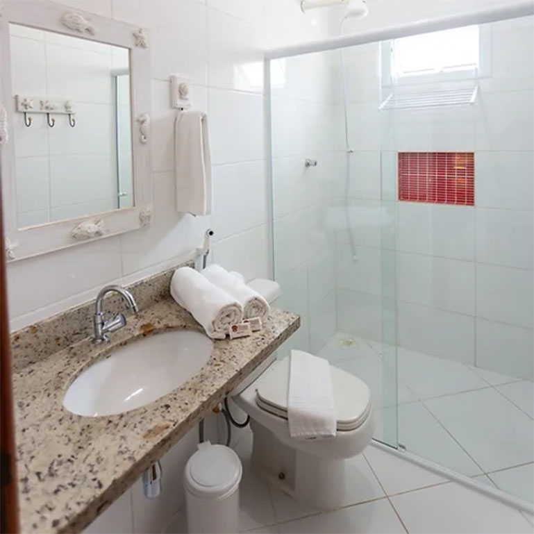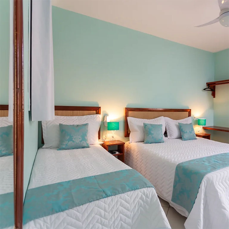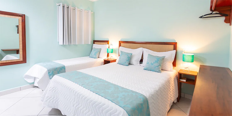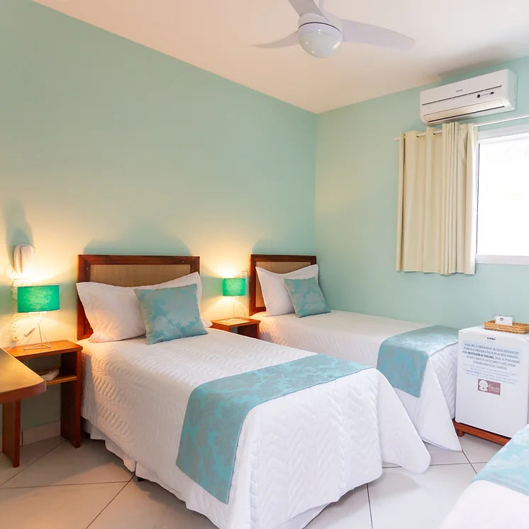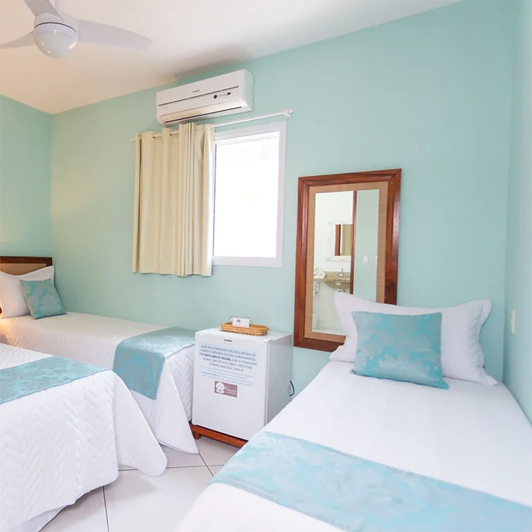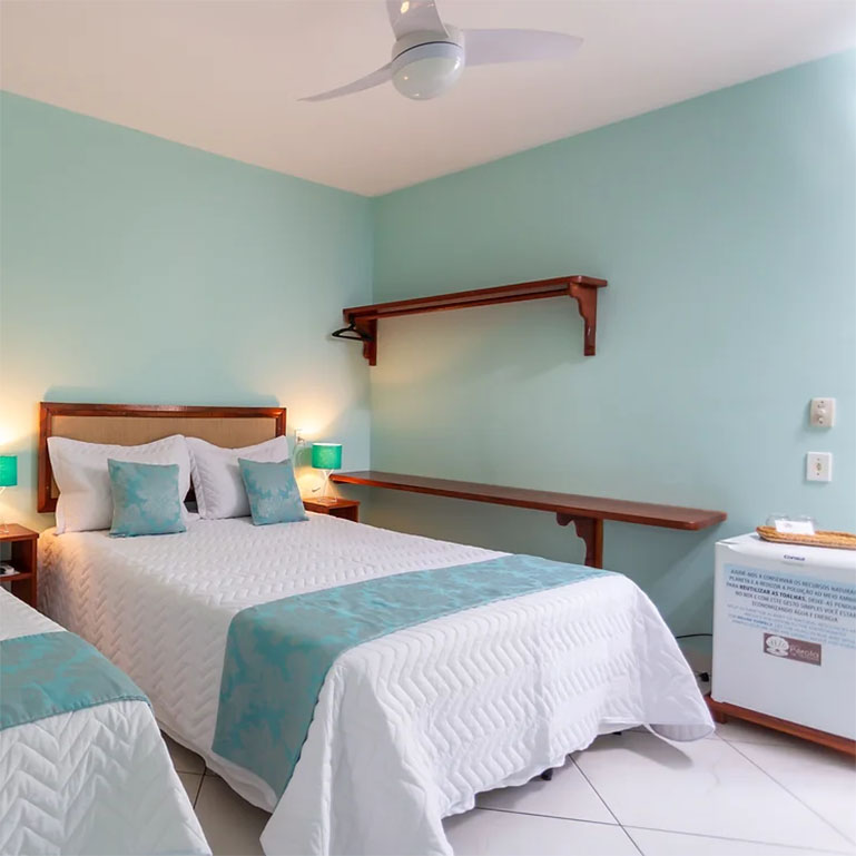 Perfeita para famílias ou pequenos grupos, a Suíte Quádrupla acomoda com conforto até 4 pessoas.